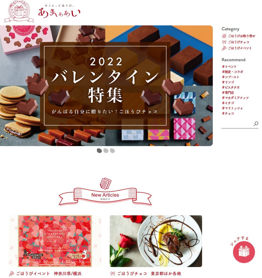 外食産業、店舗ビジネス特化型マーケティング支援事業、フードビジネス事業を展開するMTJ株式会社(所在地:東京都港区、代表取締役社長:山重柾人、以下「当社」)は、 “ごほうびスイーツ”特化型のWEBメディア『あまぁあい』を2022年2月9日(水)にリリースいたします。